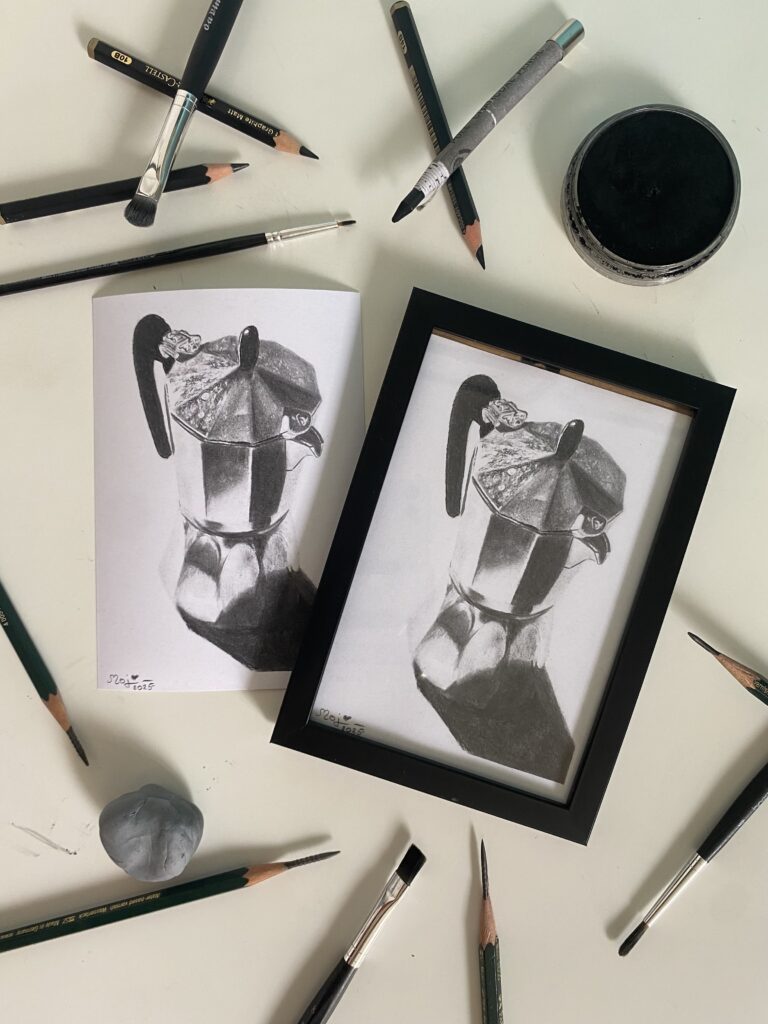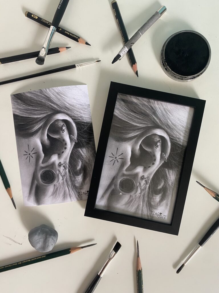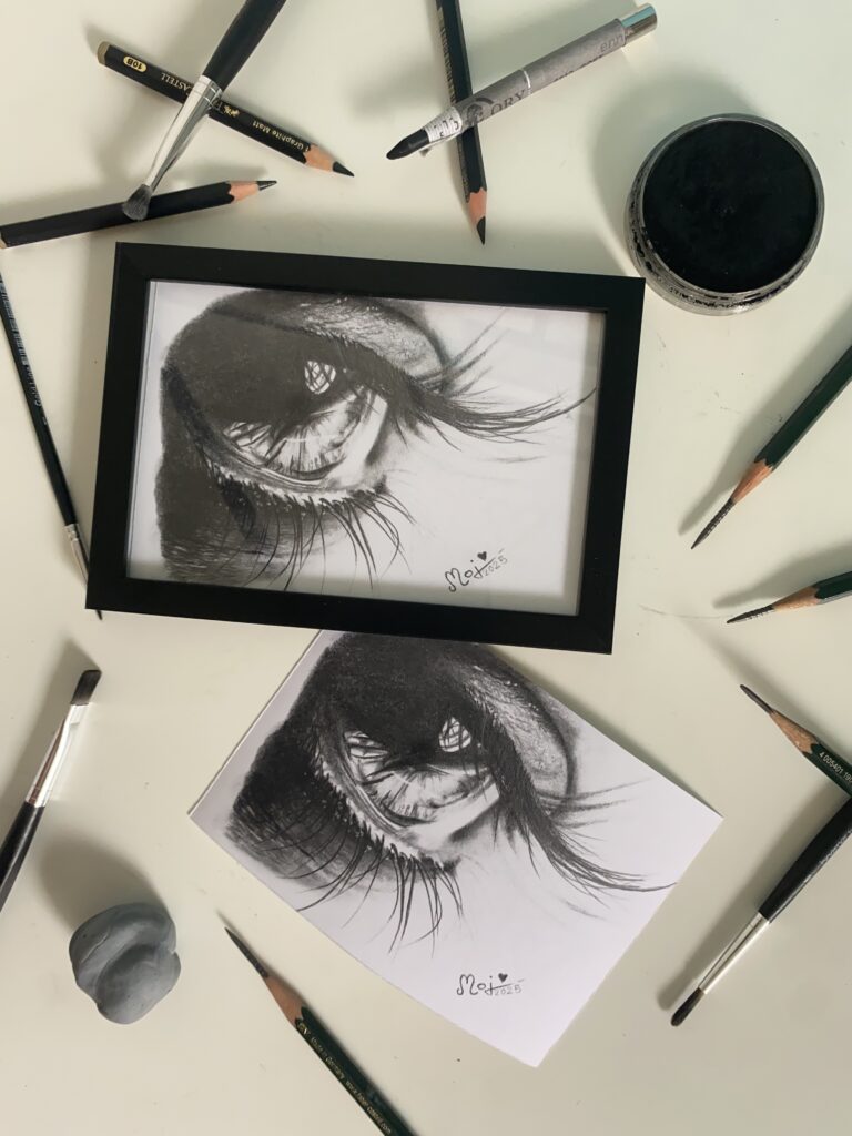 Meine Minis üben mich im Umgang mit Kohle und Pastell, welche ich erst seit Anfang 2025 mit meinen Bleistiften kombiniere.